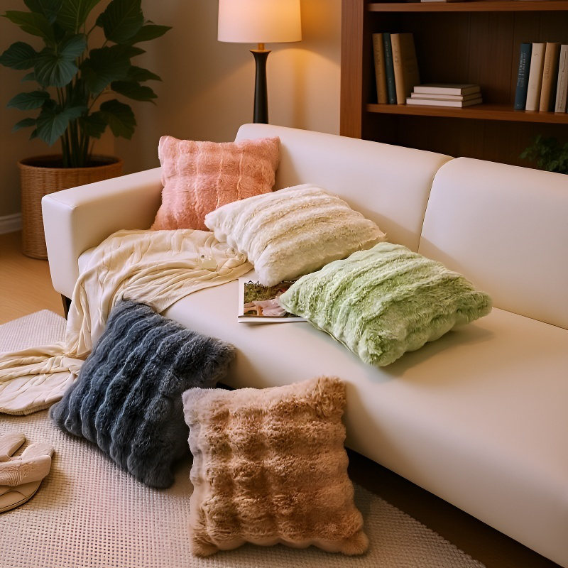 두꺼운 모조 토끼털 플러시 쿠션 커버 겨울 플러시 쿠션 [40x40/50x50/60x60CM] [쿠션